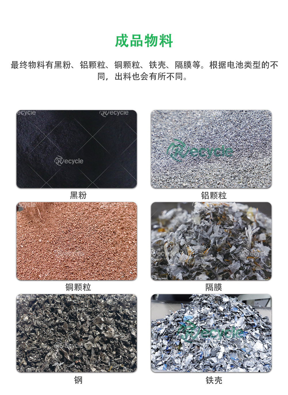 查看詳情廢棄鋰電池的處理所采用的方法是物理分離法,采用特性設(shè)備生產(chǎn)線(xiàn)通過(guò)撕碎、破碎、粉碎、風(fēng)選、分選的方式實(shí)現(xiàn)對(duì)鋰離子鋰電池中的金屬物質(zhì),隔膜紙的分離,能夠讓幾十億廢鋰電池環(huán)...